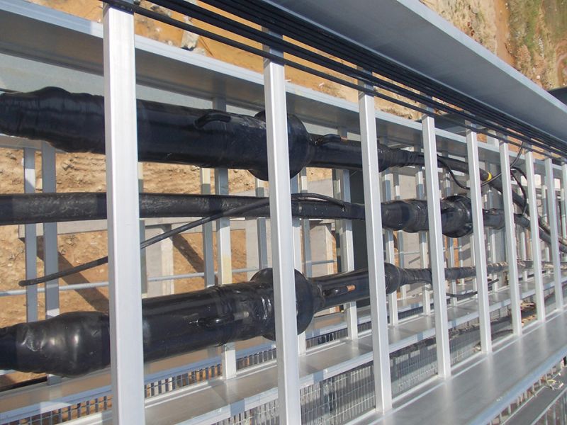 終端應力錐采用三元乙丙橡膠(EPDM)高壓注橡成型,由彈簧錐托頂緊于環(huán)氧套管內(nèi)錐形壁上,克服了應力錐由于材料老化帶來的彈性松弛、應力錐與電纜外半導電層接觸不良等弊病,以確保終端長期安全穩(wěn)定運行;終端為全干式結(jié)構,杜絕了泄露問題;產(chǎn)品結(jié)構緊湊、重量輕、體積小、大大減少了安裝空間;終端與電纜的連接方式為插拔式,安裝簡便,易于維護;插板式GIS終端還適用于電力電纜與變壓器的連接,取消了油/油套管或油/氣套管(象鼻子),節(jié)省了大量空間;短型插拔式GIS終端加裝出線桿后,又適用于與長式GIS終端配套的GIS設備。